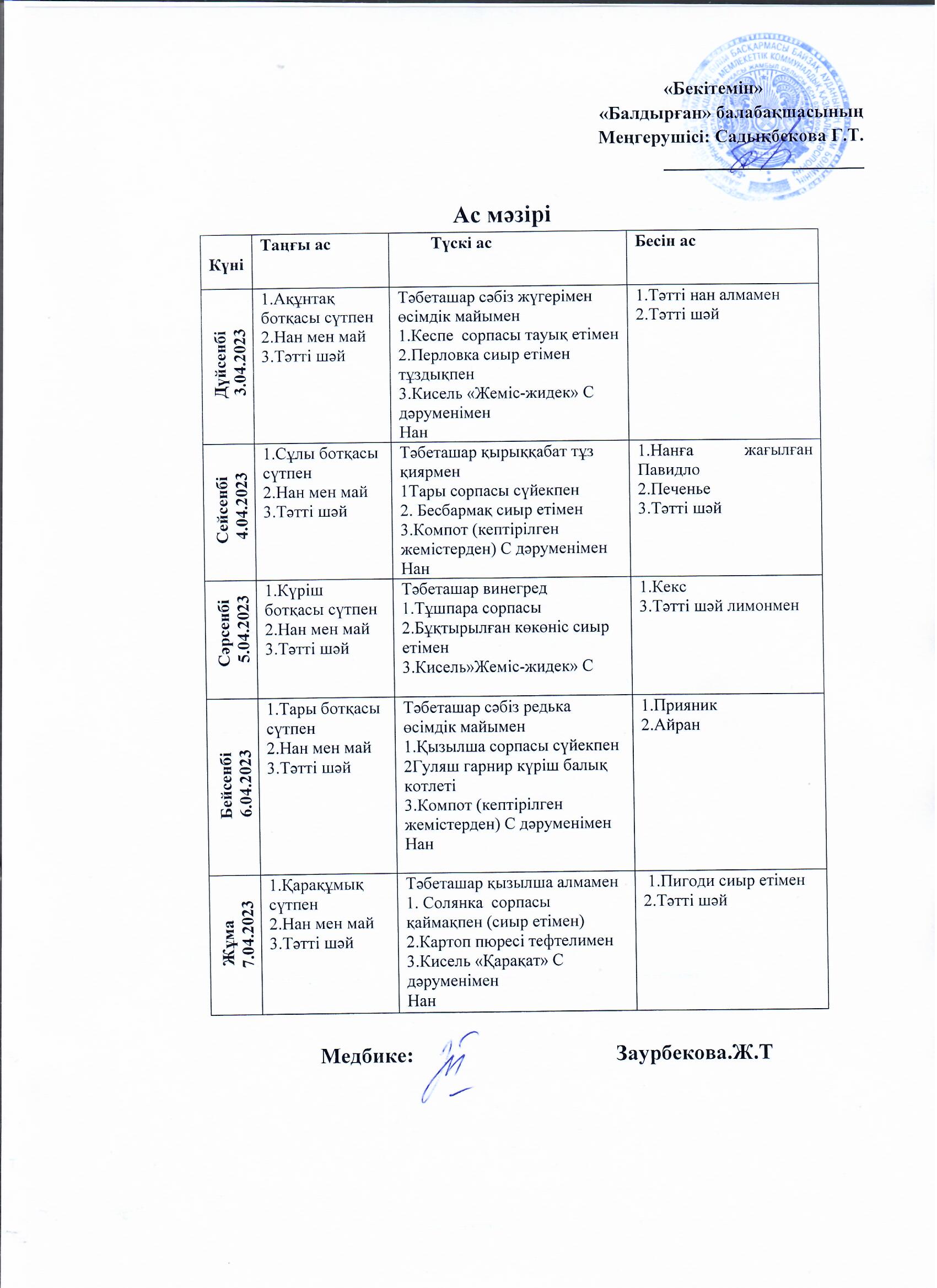 » 27.03-07.04.2023 жыл аралығындағы ас мәзірі