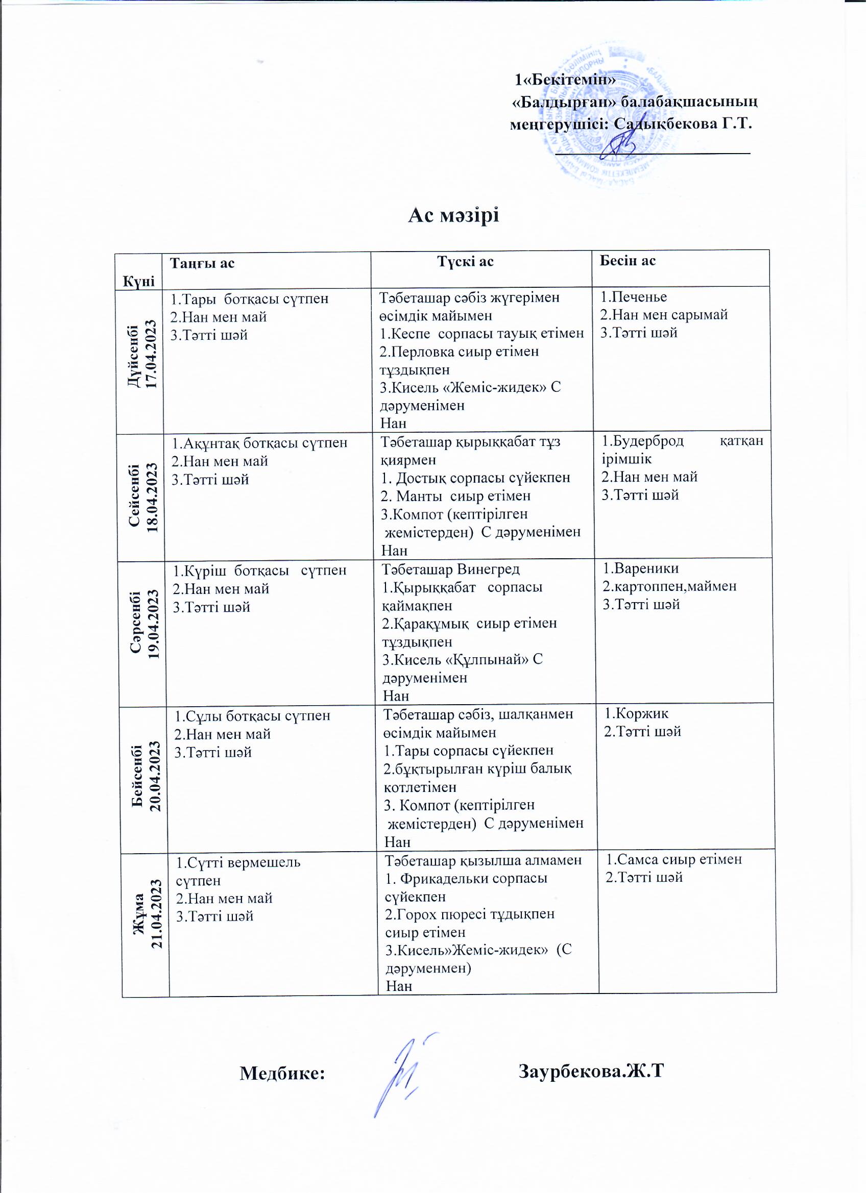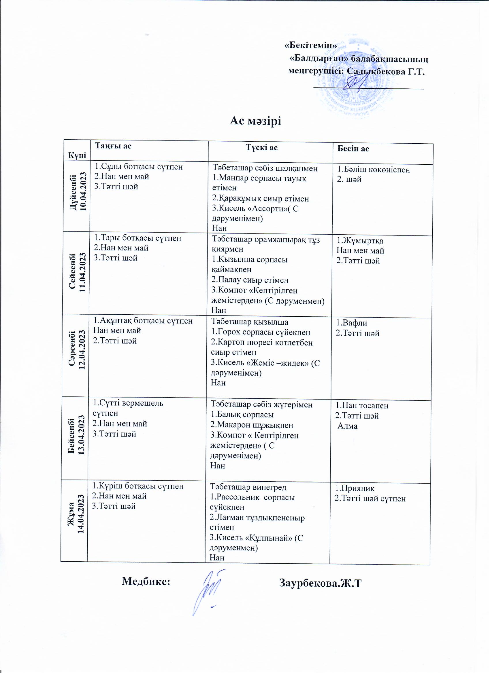 10.04.-21.04.2023 жыл аралығындағы ас мәзірі