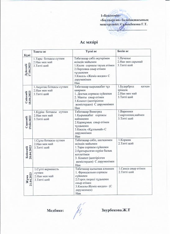 » 10.04.-21.04.2023 жыл аралығындағы ас мәзірі
