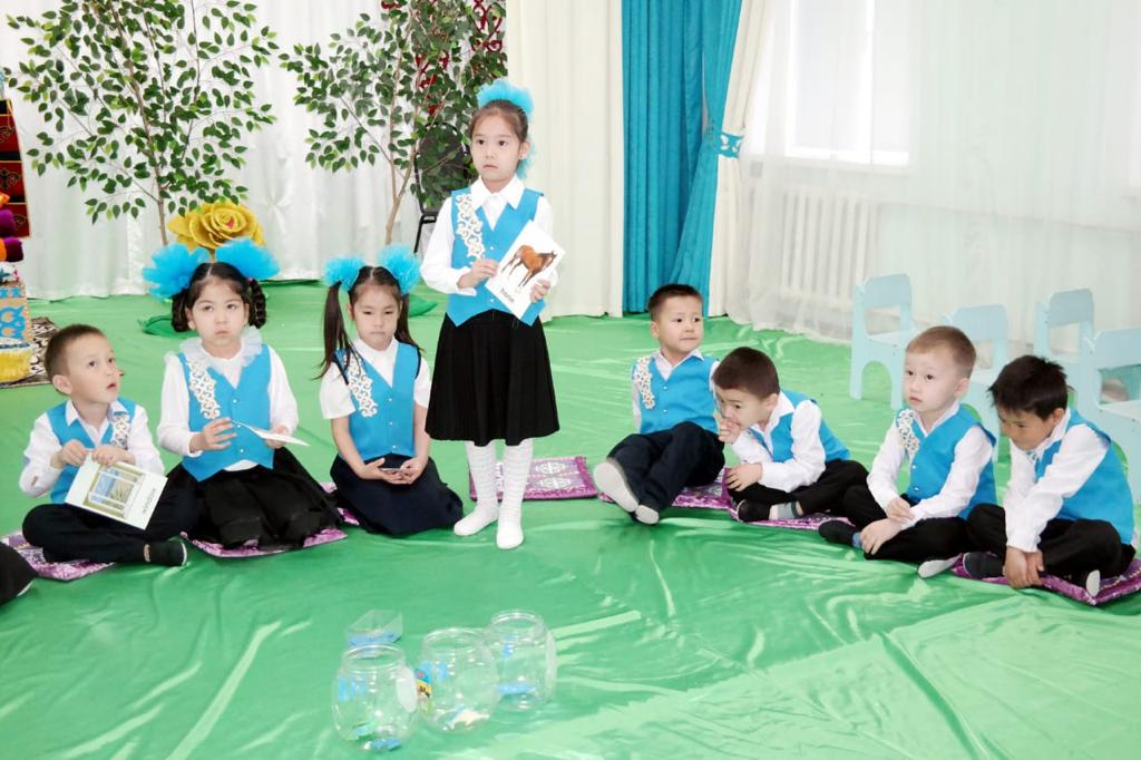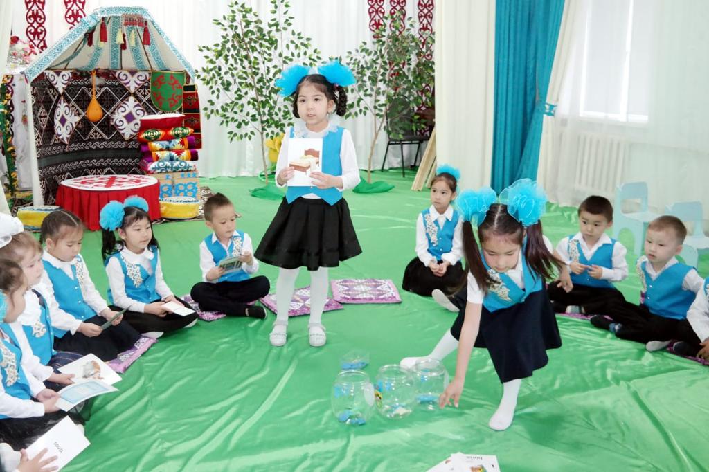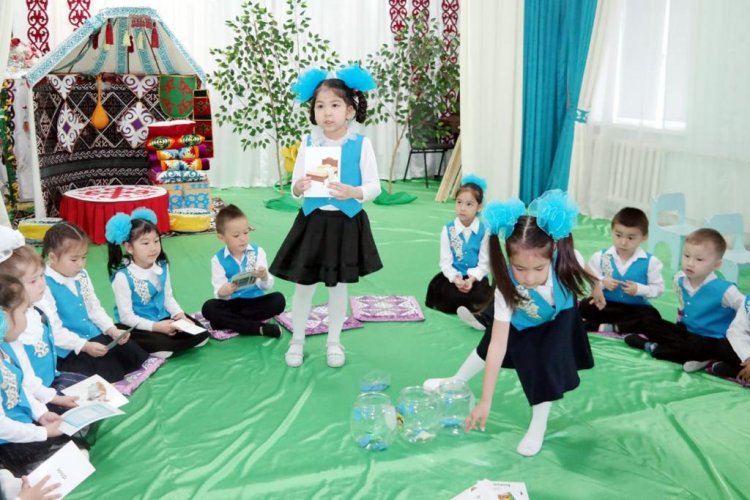 Күншуақ" мектепалды тобы тәрбиеленушілері "Сауат ашу" еліне саяхат жасап "Дыбыстар", "Сөз", " Буындар" аялдамаларына тоқтап, тапсырмалар орындады. Мақсаты: балалардың сөйлеу біліктері туралы білімдерін бекіту. Сөздерге дыбыстық талдау жасау, сөздерді буынға бөлу арқылы саны мен ретін анықтау.