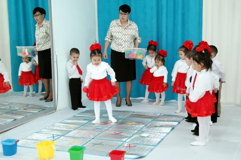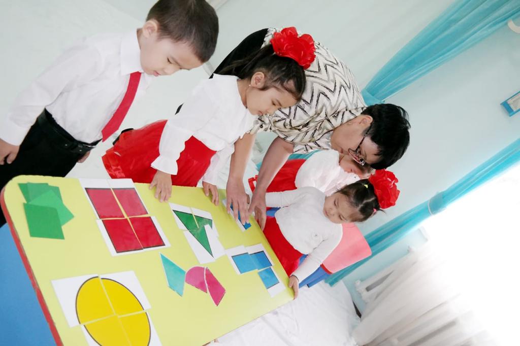 Тәрбиеші Абдыгалиева Айшат "Балапан" ортаңғы тобының бүлдіршіндерімен кіріктірілген ойын түрінде іс - әрекет өткізіп, балалармен геометриялық пішіндер туралы білімін бекіту мақсатында балалармен түрлі мақсатты ойындар ойнатылды.