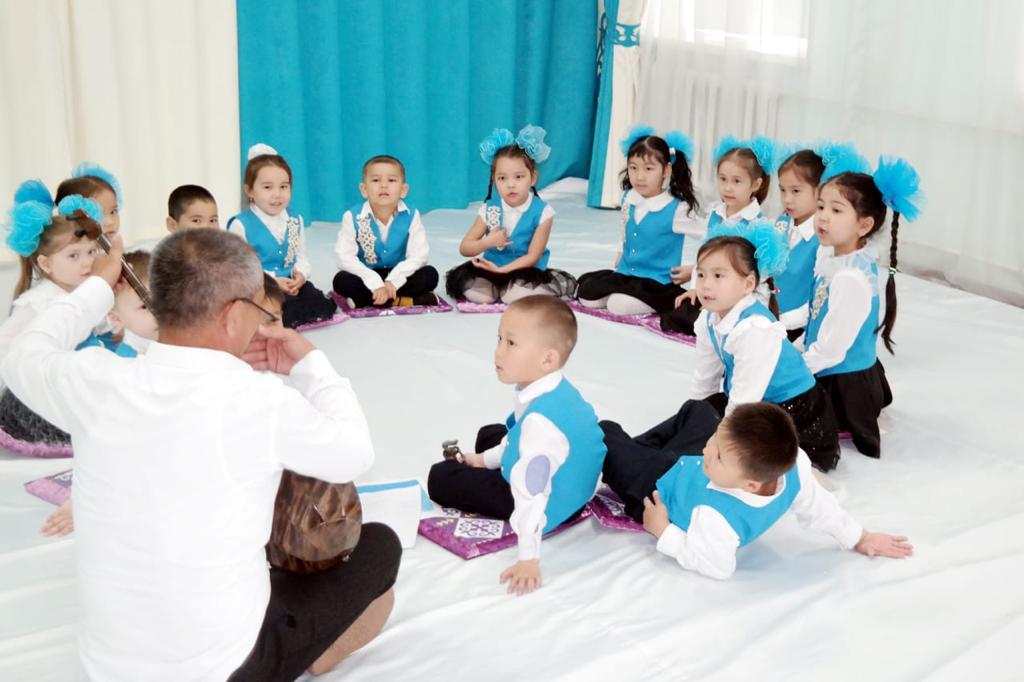 Музыка жетекшісі Ускелов Бердімұрат "Күншуақ" мектепалды тобымен музыкалық ырғақты ойындар ойнау арқылы балалардың эмоционалдық көңіл күйлерін көтеріп, әуенді тыңдау арқылы музыканы қабылдаумен зейінін дамыту мақсатында ойын арқылы ұйымдастырылған іс - әрекет өтті.