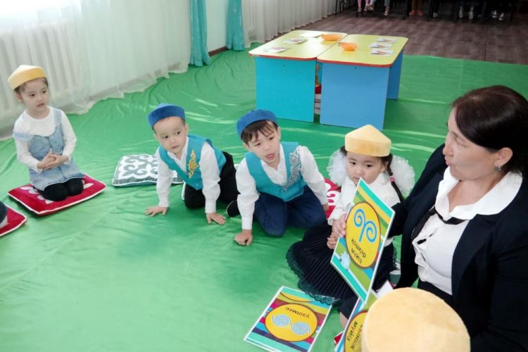 "Ертегілер" ересек тобының тәрбиешісі Серикбаева Алияның ұйымдастыруымен "Сиқырлы оюлар" тақырыбында кіріктірілген іс-әрекет өтті. Балаларды  ұлттық ою - өрнек түрлерімен таныстыра отырып, 5-ке дейінгі реттік санау дағдыларын дамыту мақсатында ойындар ойнатылды