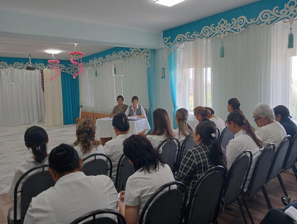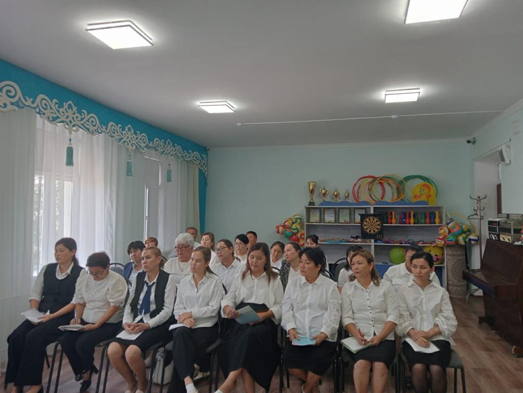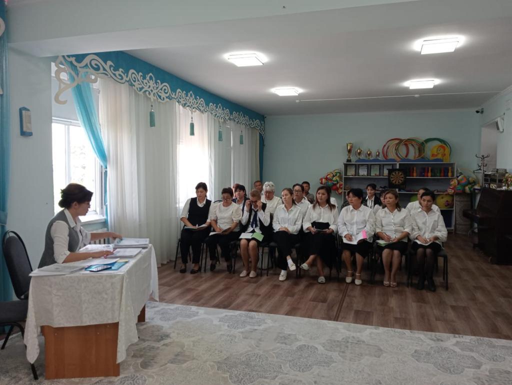 31 август 2023 0 1 2 3 4 5 №1 Педагогикалық кеңес 2023-2024 оқу жылының жылдық жұмыс жоспарына сәйкес 2023 жылдың 31 тамыз күні бірінші педагогикалық кеңес «Мектепке дейінгі мекеменің жаңа оқу жылына дайындығы; тәрбие – оқыту процесінің бағытымен ерекшіліктерін ұйымдастыру» тақырыбында өтті.
