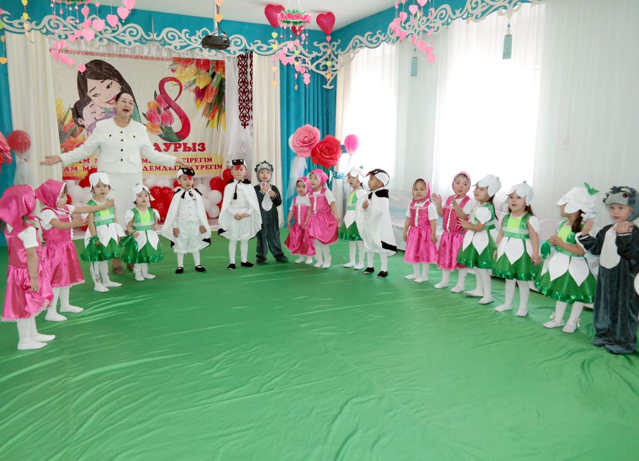 "Жұлдыздар" ортаңғы тобының тәрбиешілерінің ұйымдастыруымен 8- наурыз Халықаралық әйелдер күніне арналған мерекелік ертеңгілігі.