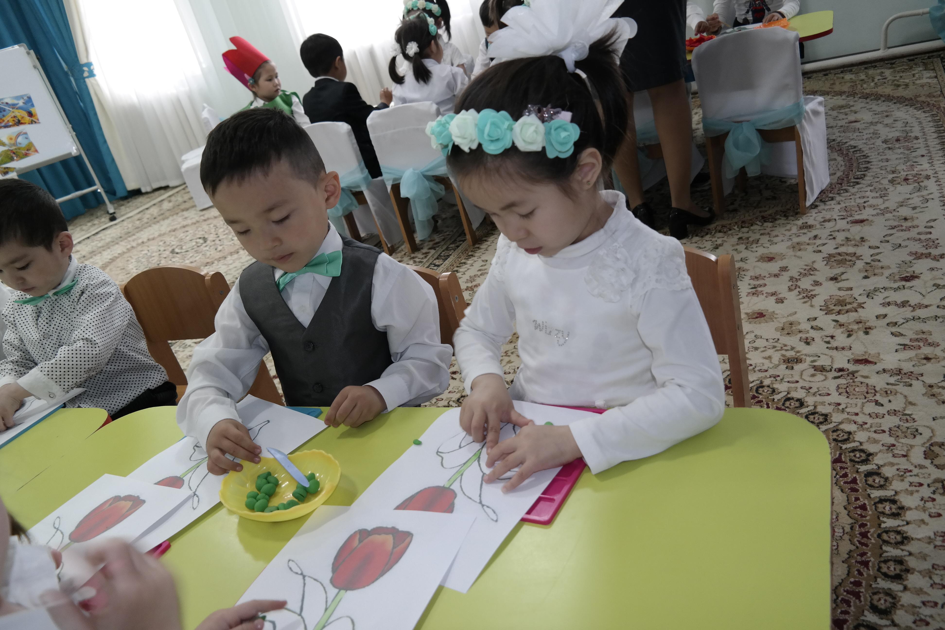 Сахариева Динара "Балдырған" ортаңғы тобымен "Көктем ғажайыптары" тақырыбында ашық оқу қызметін ұйымдастырды. Оқу қызметі барысында "Мнемокесте" әдісін, ТРИЗ технологиясының элементтерін қолдана отырып, ермексазбен бояу әдістерін тиімді пайдаланып, балаларды қызықтыра білді.