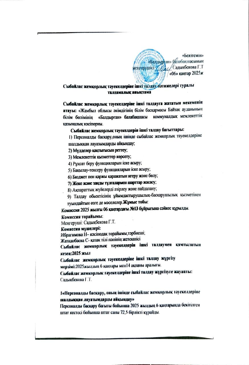 10 май 2025 0 1 2 3 4 5 Сыбайлас жемқорлық тәуекелдеріне ішкі талдау нәтижелері туралы талдамалық анықтама